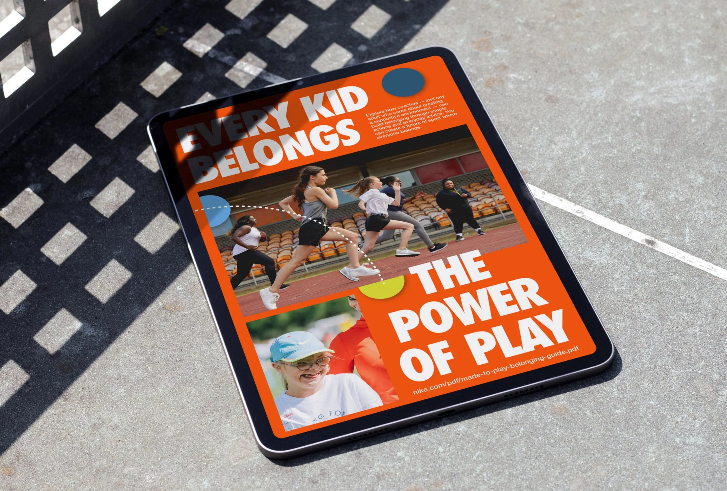 Nike hired us to create a coaching playbook intended to help empowering adults foster a sense of belonging for all kids. I managed content production and project definition (budget, timeline, scope). The work involved brand and cultural immersion to determine white space and opportunity, along with ongoing management of external Nike partner organizations, coaches and athletes across the globe from the United States, Japan, Mexico, and the U.K.